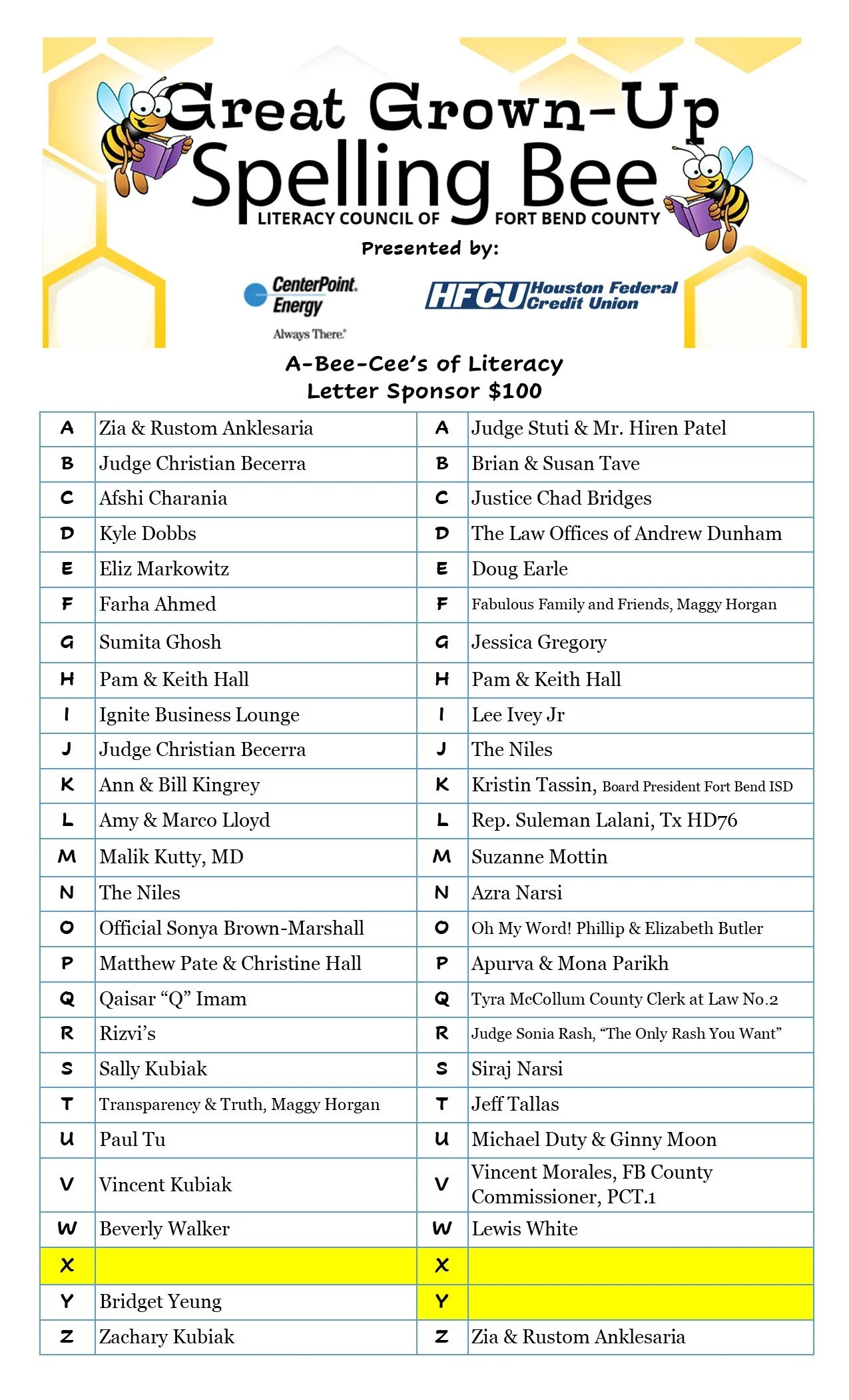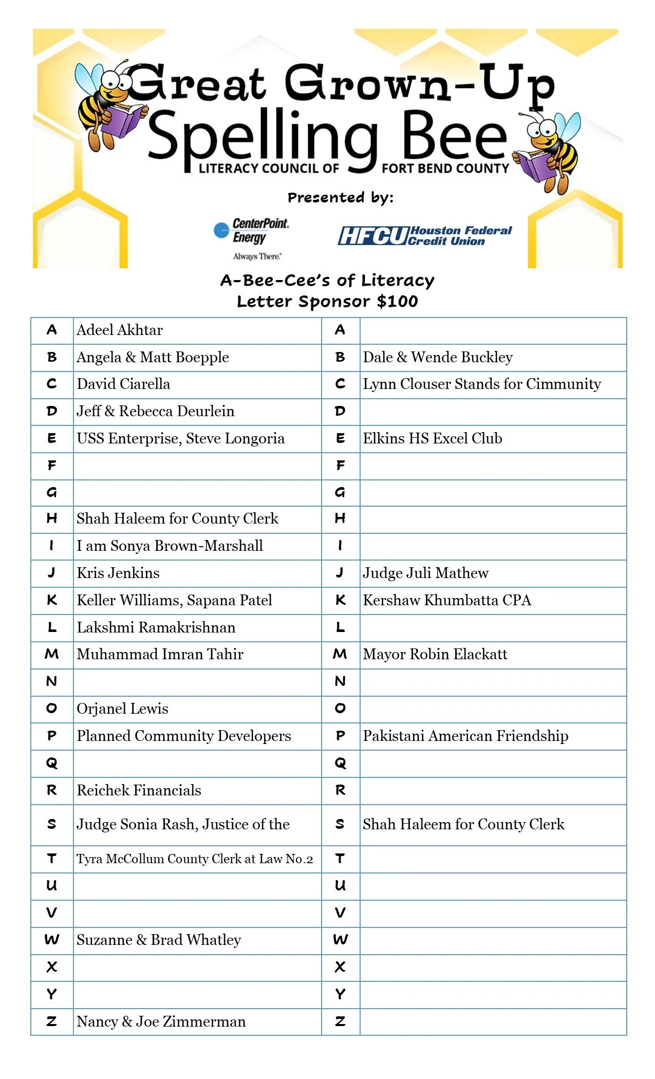 This is not your average spelling bee – it's a chance to relive the thrill of word challenges while making a meaningful impact on our community's literacy initiatives. Let's come together, spell with style, and support the cause of empowering minds through literacy.