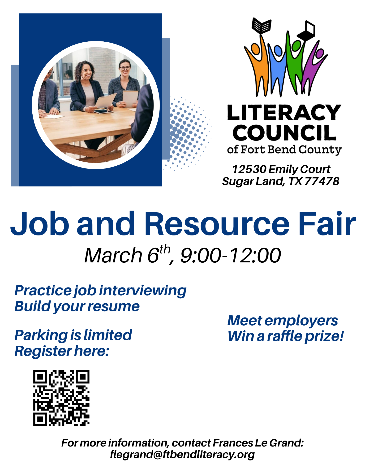 Sign up to participate in our spring job and resource fair, taking place at 12530 Emily Court, Sugar Land, Texas 77478.